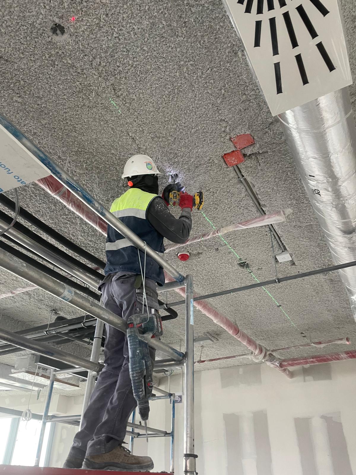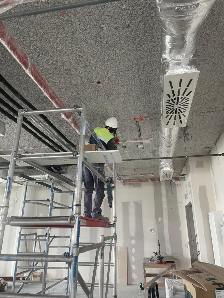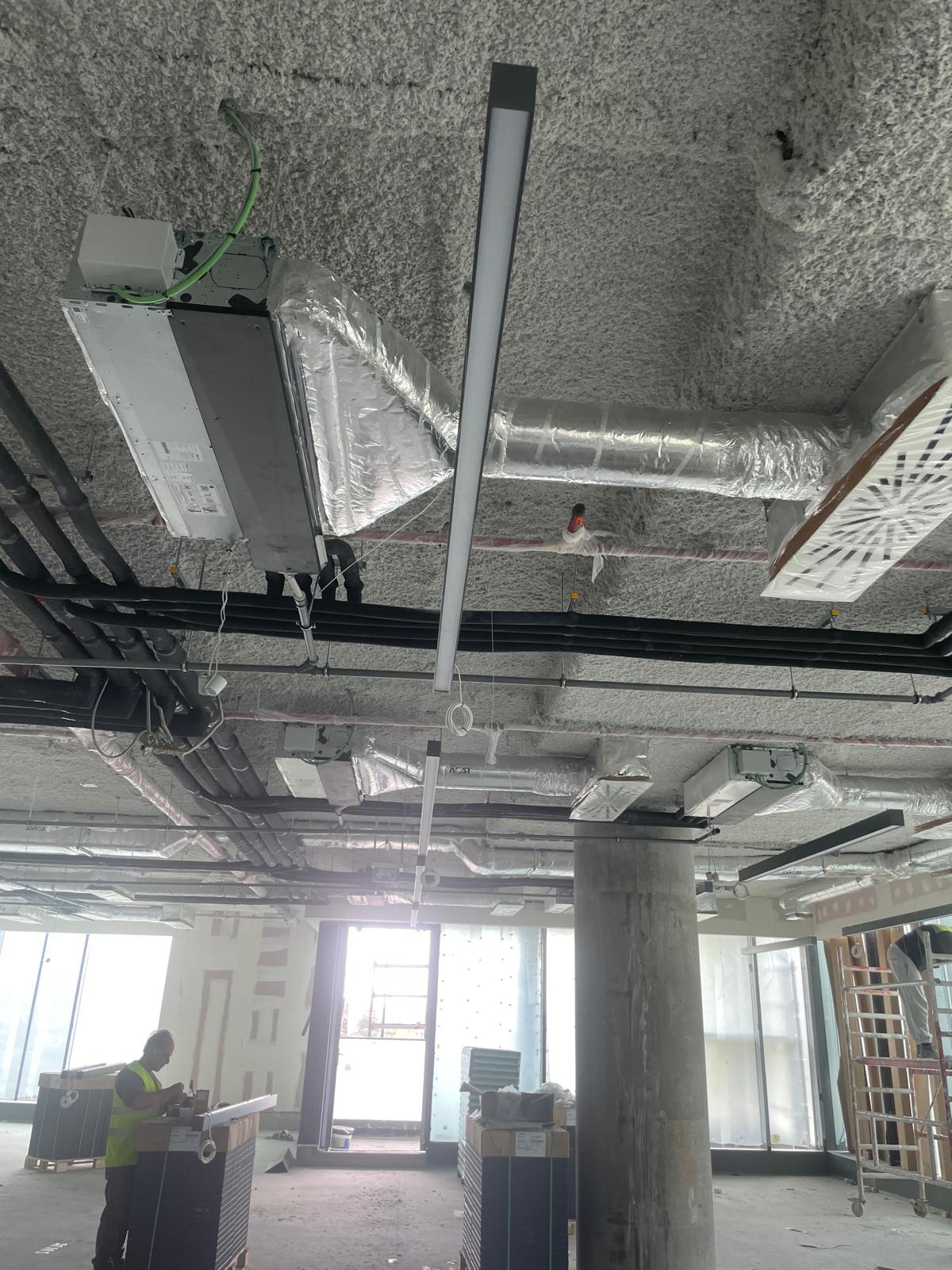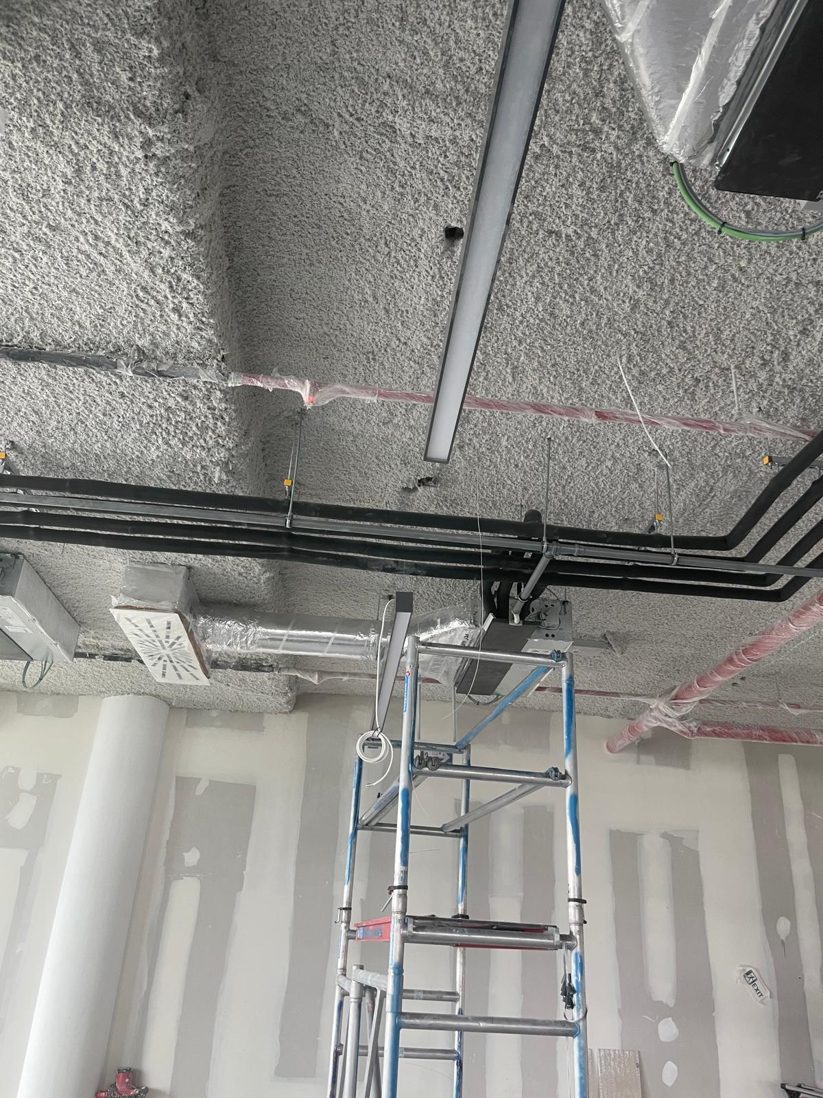 Instalação de sistemas de iluminação embutida e suspensa, redes elétricas e de telecomunicações, canalizações técnicas e soluções de suporte ao AVAC;